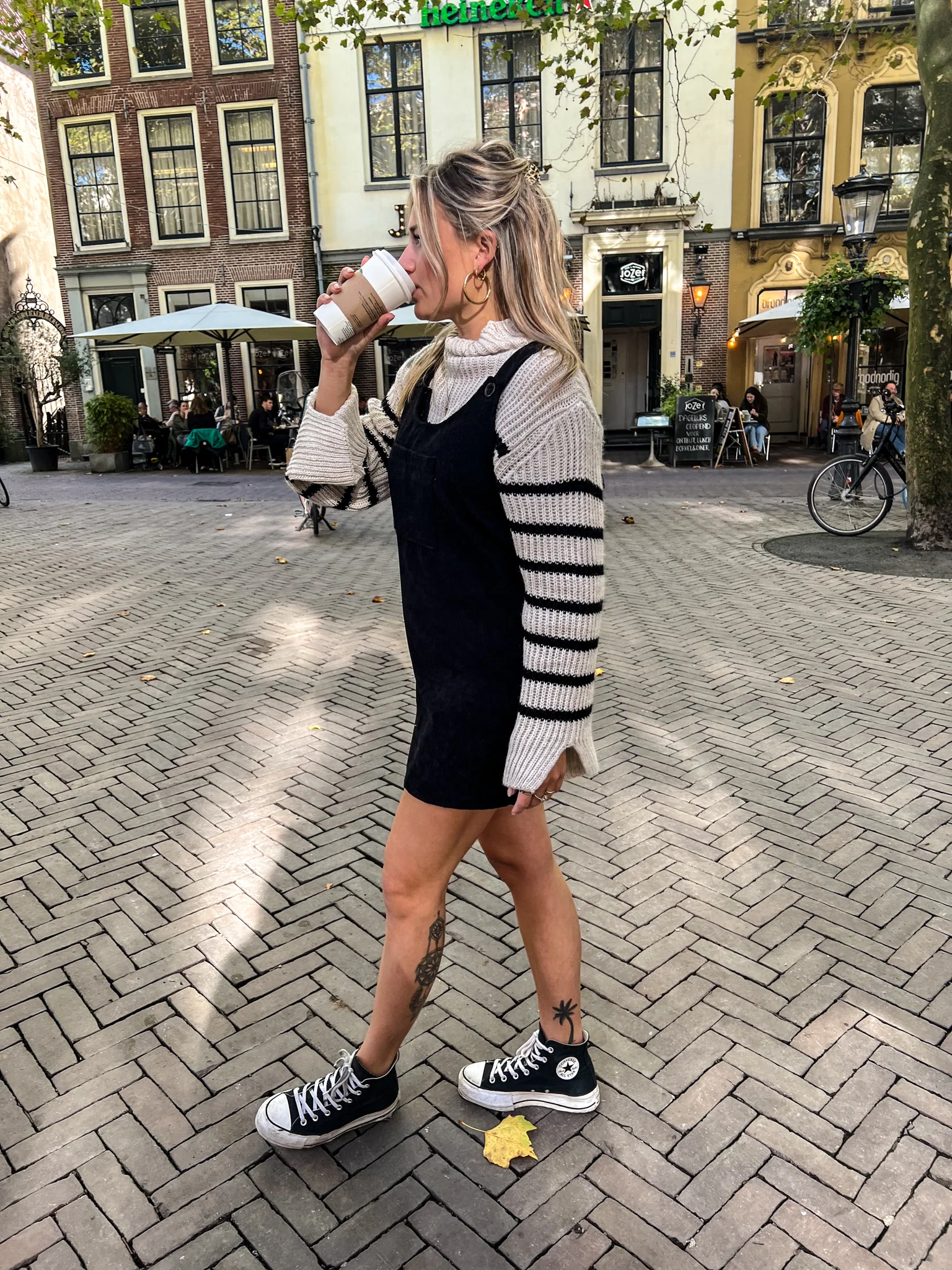 Onze Corduroy overall is een echte corduroy cutie! De wide fit en verstelbare schouderbandjes zorgen voor een fijne pasvorm. Het overgooi jurkje heeft een zakje op de borst en de bandjes sluiten met een knoopsluiting.