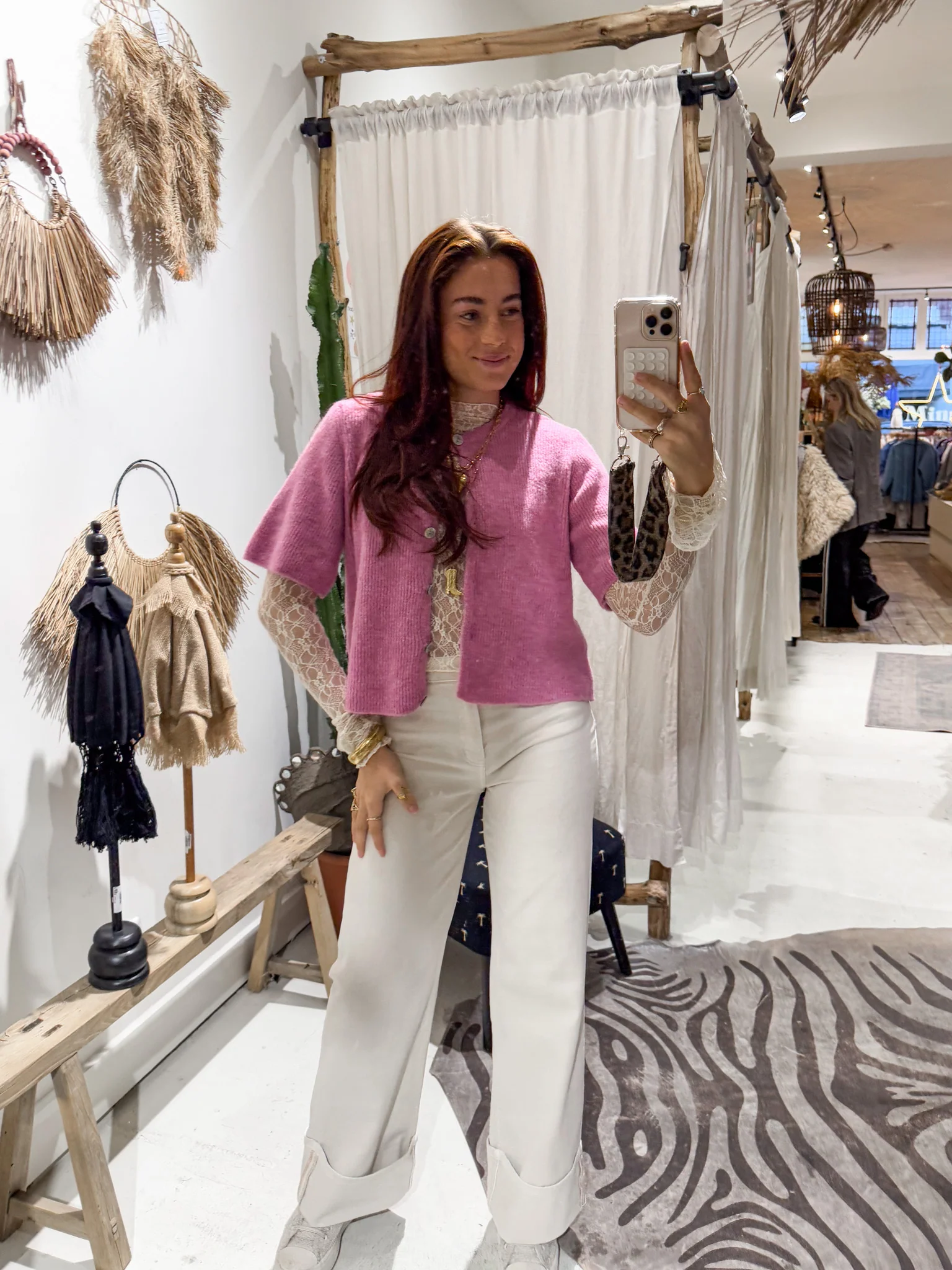 Ons Elsa Vest is het ideale vestje voor een daily outfit. Het vestje heeft een driekwart mouw en is zacht van stof. Dankzij de wide fit en de knoopsluitingen zit het vestje super comfortabel en kun je deze leuk combineren met een lace top.