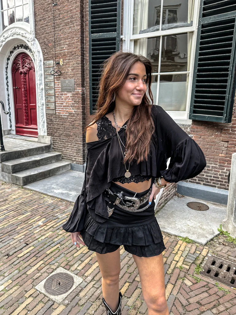 Ruffle your way through summer met onze Go Black skort! Deze minirok bevat een broekje en heeft vrolijke ruffles.