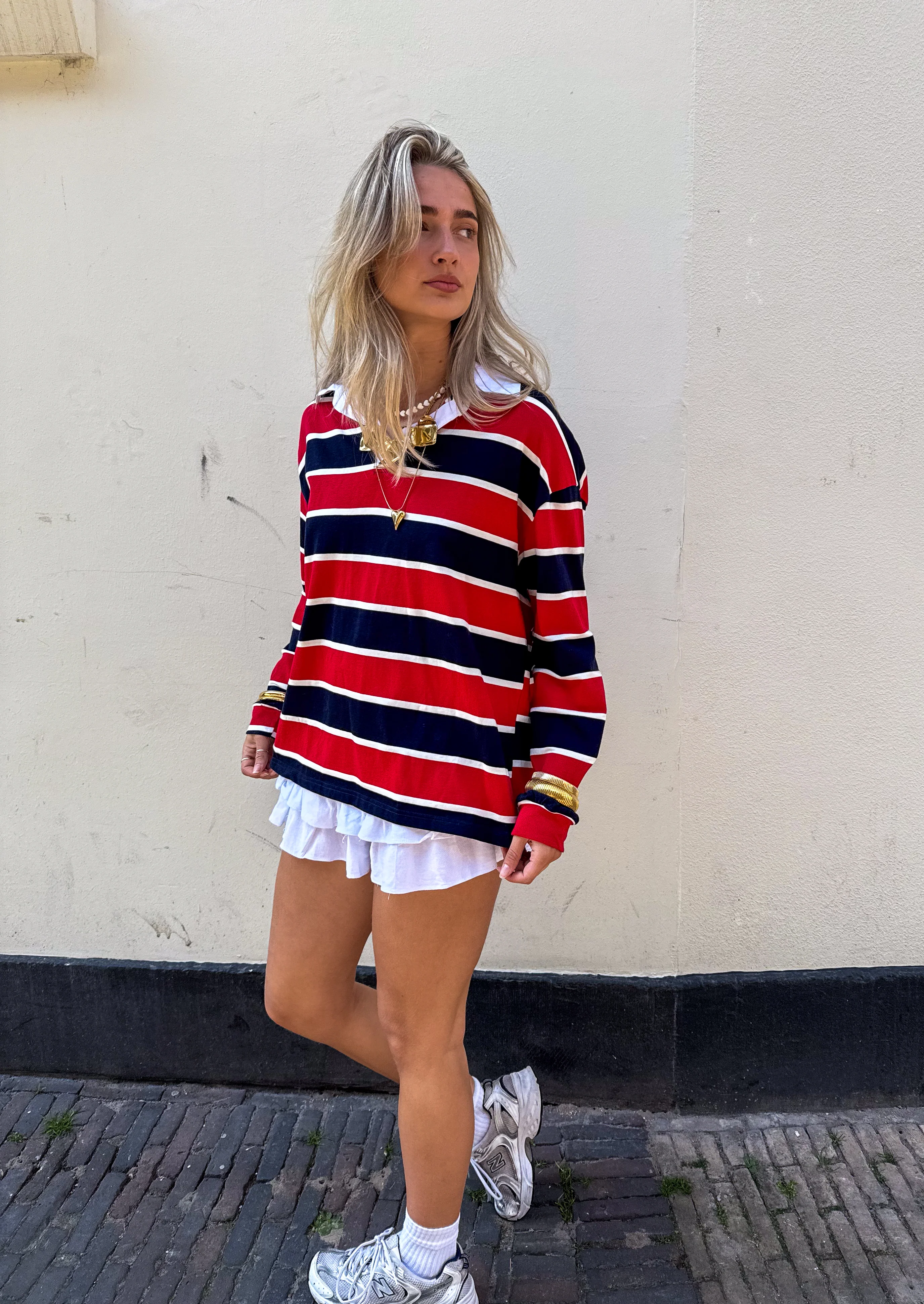 Model 1 is 1.68m en draagt maat S, model 2 is 1.75m en draagt maat S, model 3 is 1.74m en draagt maat S, model 4 is 1.68m en draagt maat S