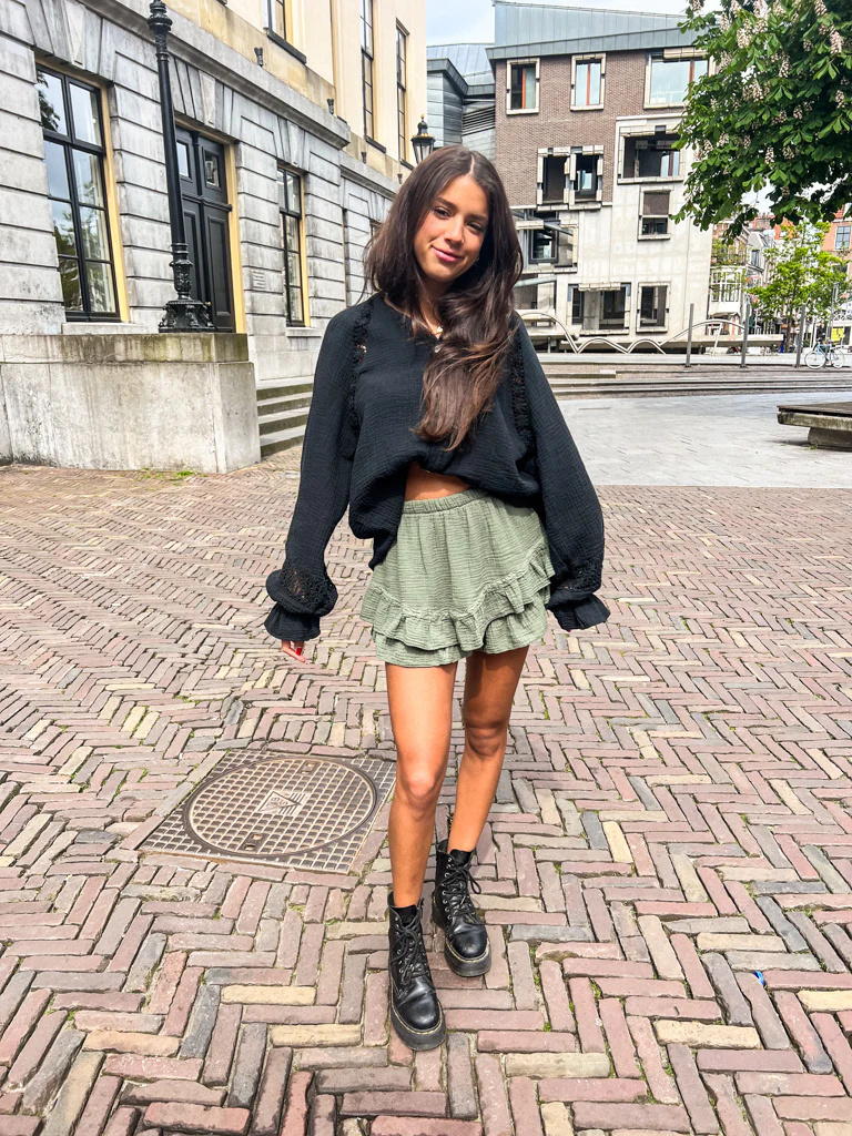 Met Minre’s signature Montana blouse fleur je iedere outfit op. Het embroiderie detail in de mouwen en bij de oksels geven het een een boho touch, waardoor deze perfect te dragen is onder bijvoorbeeld een jas of trui. De oversized look en vrolijke, uitlopende mouwtjes maken je look helemaal af!