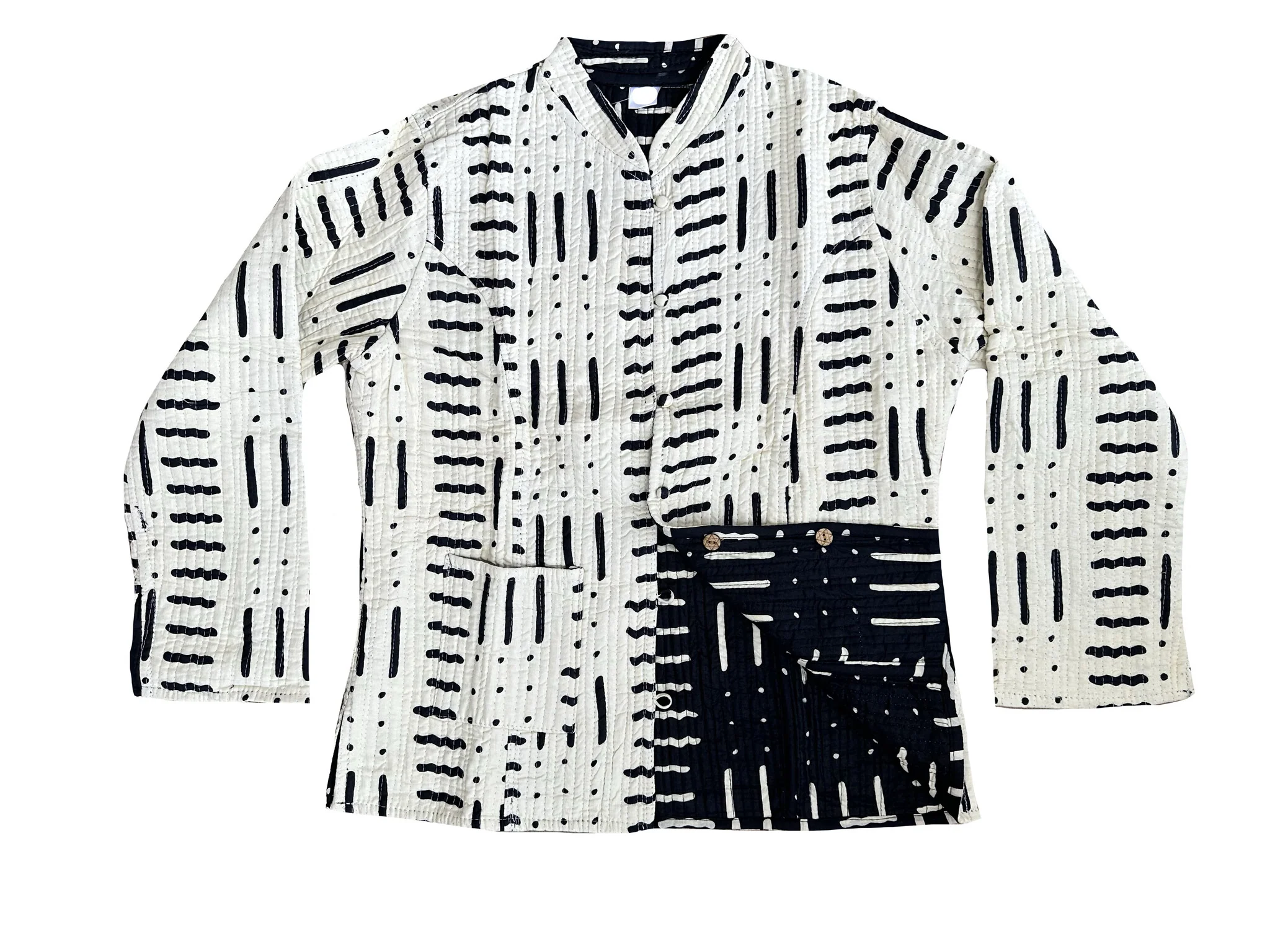 Met ons Salih Jacket heb je double the fun! Het jasje is reversible en daarom op twee manieren te dragen. Onze signature Salih Jacket heeft knoopsluitingen en twee steekzakken aan de voorkant.