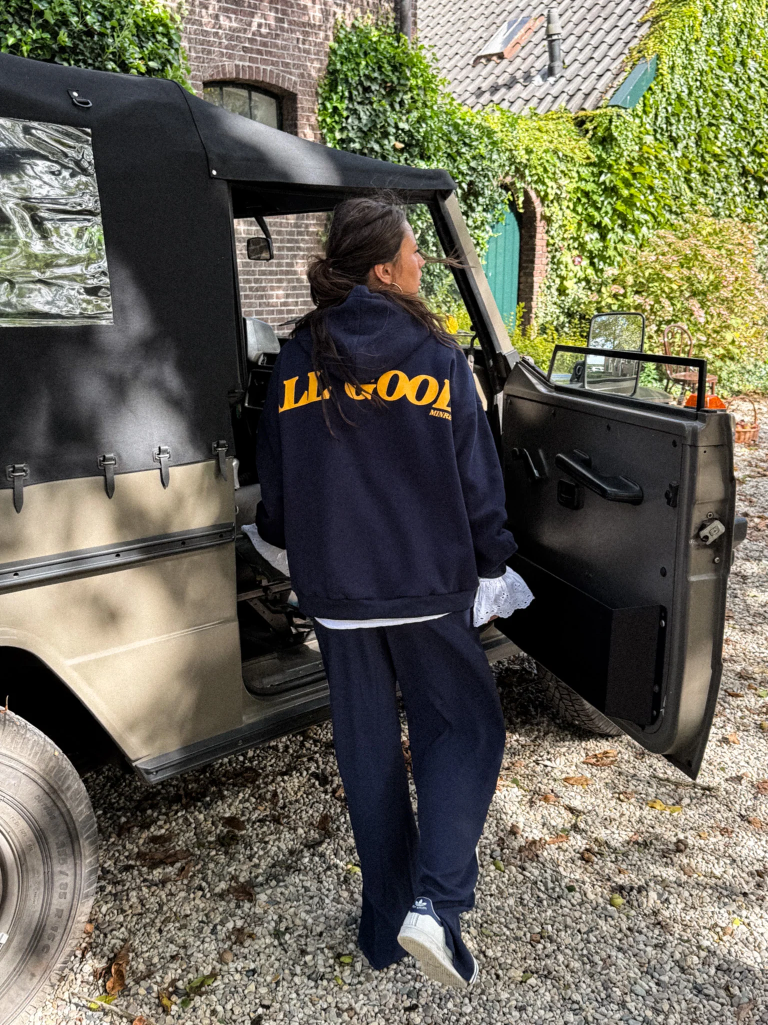 Onze Striped Pants Navy is een ideale broek om casual te dragen. De broek heeft een elastische band waardoor hij comfortabel zit en geen verdere sluitingen heeft. Deze sportieve broek heeft een loose fit en twee witte strepen aan beide kanten over de gehele lengte.
